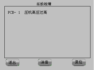 2、當(dāng)機(jī)組在運(yùn)行時(shí),出現(xiàn)停機(jī)故障,如“系統(tǒng)回水溫度探頭斷路故障”,機(jī)組停機(jī),并自動(dòng)切換到主運(yùn)行接口。